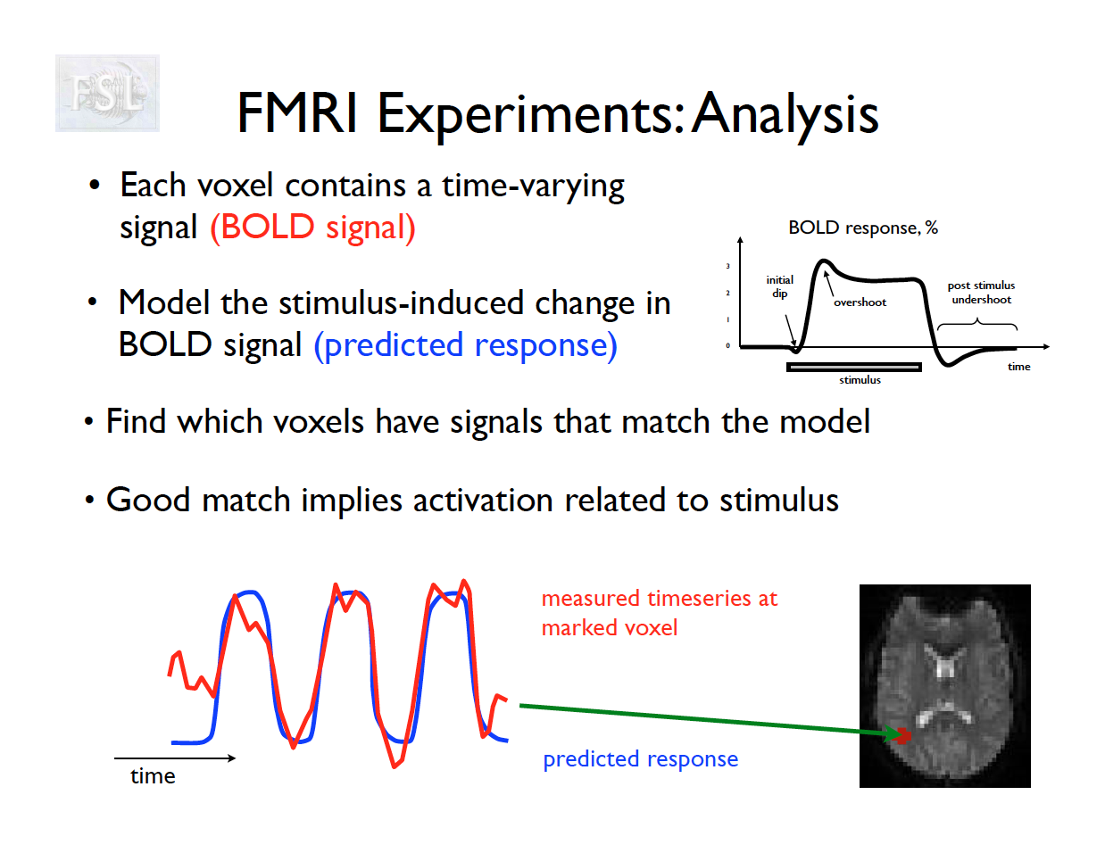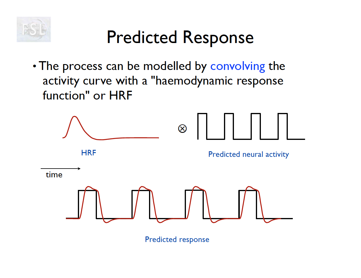 - Known stimulus time series are convolved with an assumed hemodynamic response function (HRF)